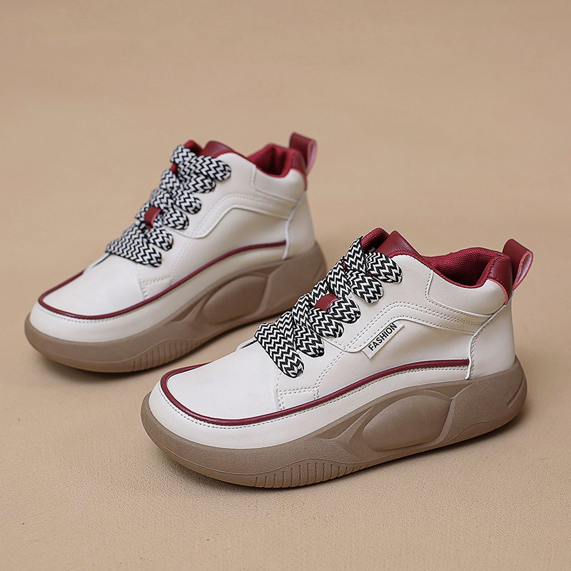 รองเท้าสีขาวหุ้มข้อสูง พื้นหนา สำหรับผู้หญิง