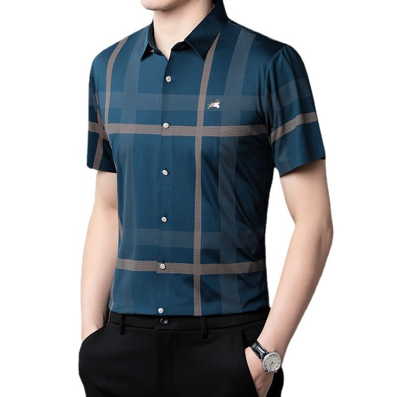 เสื้อเชิ้ตแขนสั้นลายทางสไตล์ธุรกิจลำลองผู้ชาย